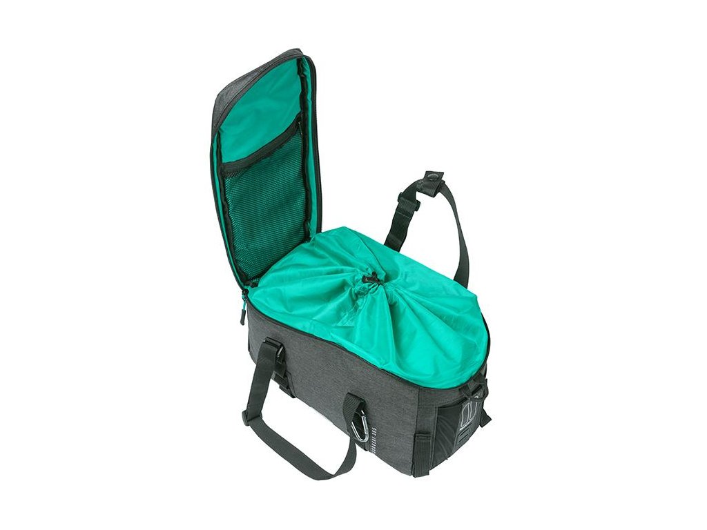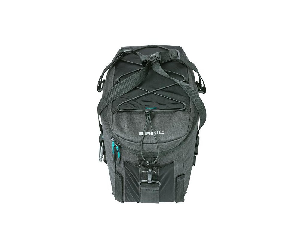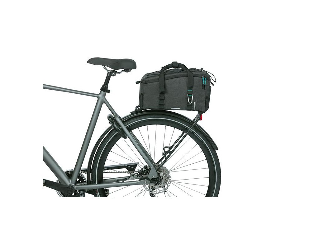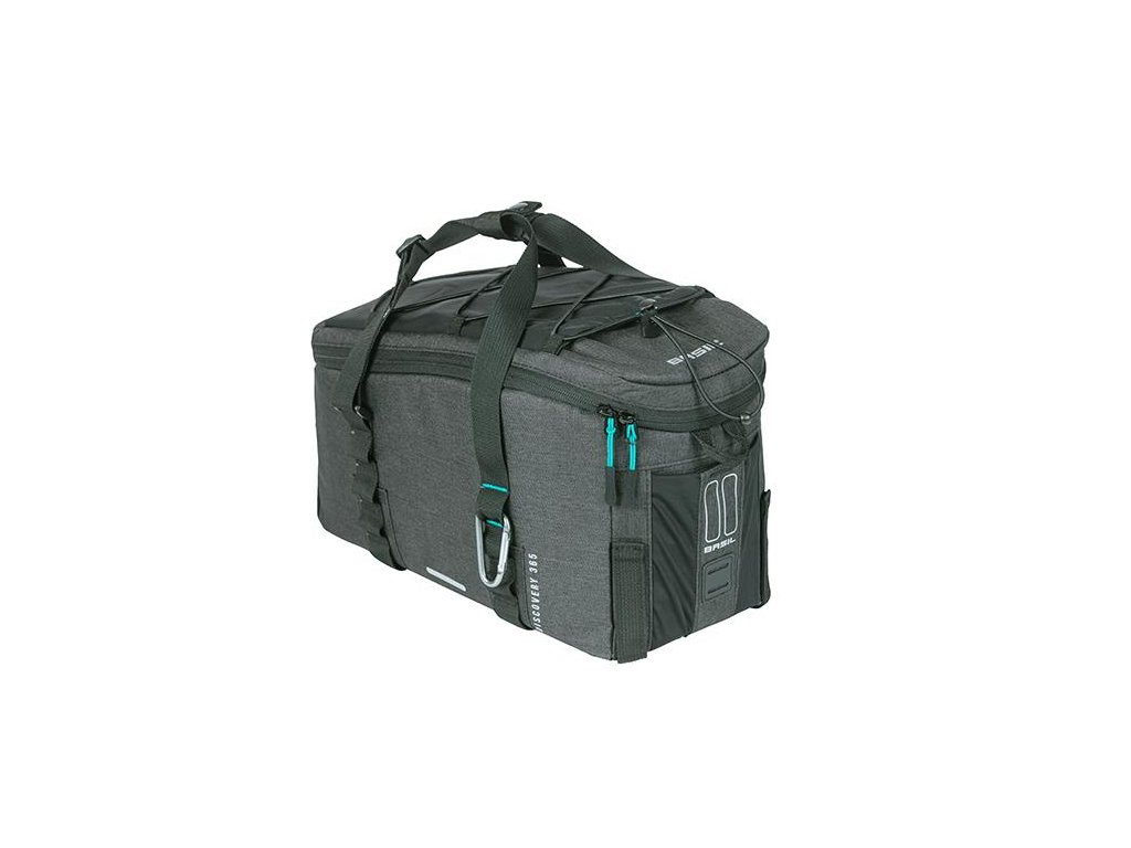 S Basil Discovery 365D M je športová taška na vrch nosiča. Vrchný čierny melanž poťah je vyrobené z vodoodpudivého polyestru a má objem 9 litrov. Je vhodná pre dámy i pánov bicykel a obsahuje komfortné madlá. Taška má aj uzatváraciu chlopňu s elastickým vreckom a praktickou šnúrkou. Takto môžete mať veci na svojom mieste. Potrebujete viac miesta na fľaše? Nie je problém, pretože bočná strana tašky má ďalšie elastické vrecko.Suchý zips umožňuje jednoduché pripevnenie tašky k nosiču. Športová taška je vhodná aj na použitie s adaptérmi MIK alebo Racktime. ( nie sú súčasťou). Taška má odnímateľný ramenný popruh. Pod rúčky si môžete upevniť prilbu.