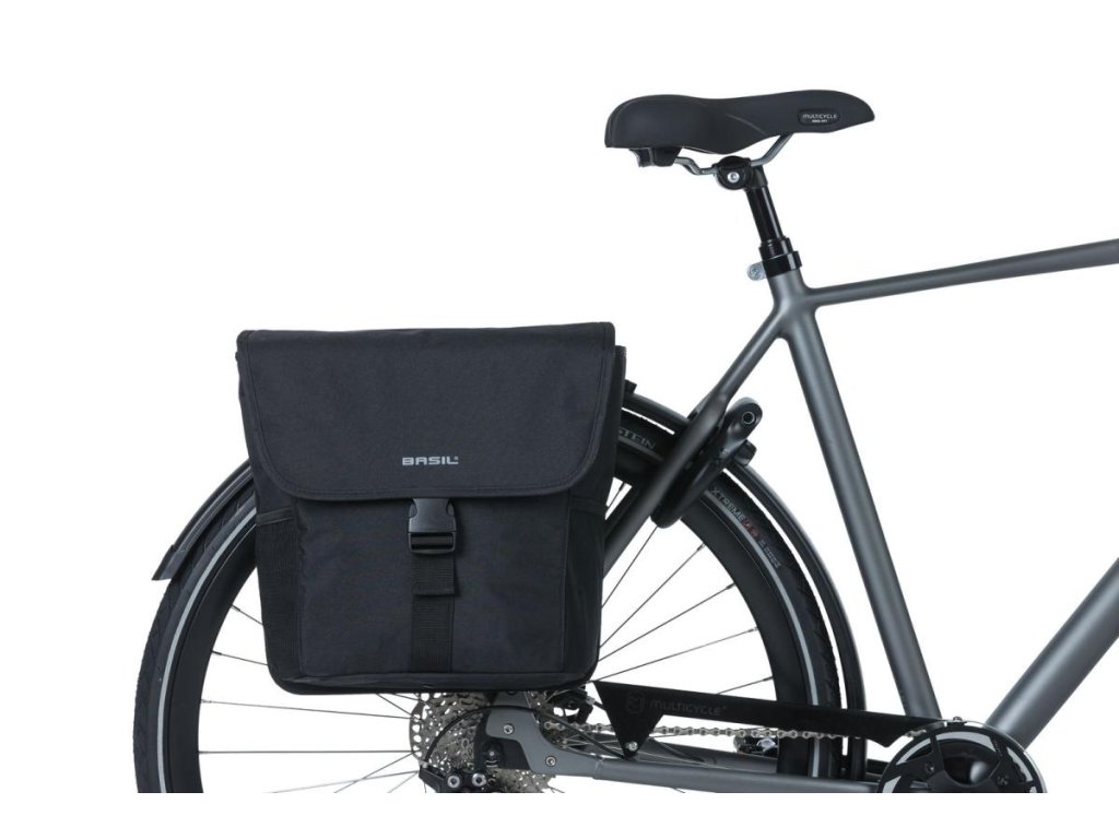 Dvojitá taška Basil GO je určená pre montáž na zadný nosič bicykla. Je ideálna na prepravu vašich potravín, alebo každodenných potrieb. Taška má priestrannú hlavnú priehradku, ktorú môžete zatvoriť šnúrkou spolu s elastickým vonkajším vreckom na každej strane. Je to užitočné, keď chcete vziať so sebou fľašu vody, alebo dáždnik.