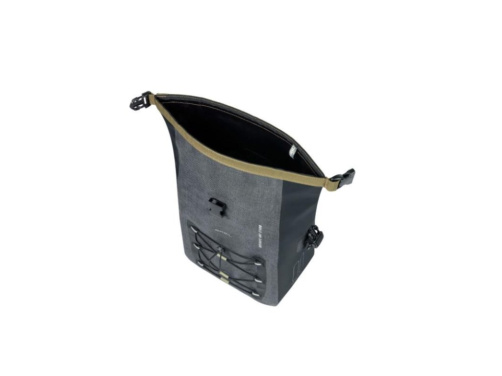 S taškou na bicykel Basil Navigator Storm vo veľkosti M si vyberáte športovú a funkčnú samostatnú tašku na bicykel. S touto taškou zvládnete akékoľvek dobrodružstvo.100% vodotesná, vyrobená z kvalitnej vodeodolnej látky (IPX3). Funkčný dizajn zaisťuje, že táto taška ľahko prepraví všetko, čo potrebujete. Všetko bolo premyslené, aby bolo možné vziať si svoje veci, kamkoľvek idete, tým najpraktickejším spôsobom. Vďaka nastaviteľnej elastickej šnúrke je miesto napríklad na cyklistickú prilbu. Taška na bicykel sa dá jednoducho uzavrieť rolovacím uzáverom. Tento rolovací uzáver je možné pripevniť tromi spôsobmi. Cestovanie v tme? Žiaden problém! S reflexnými logami Basil na 3 stranách budete viditeľní. Preto ste vždy pripravení na cestu.
