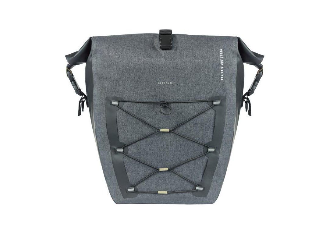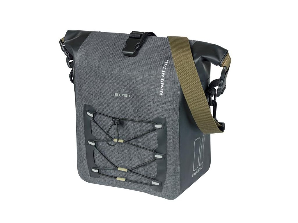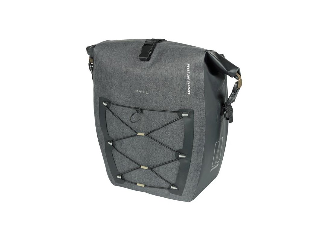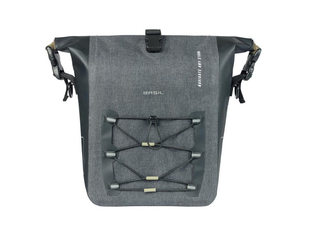 S cyklistickou taškou Basil Navigator Storm si vyberáte športovú a funkčnú tašku. S touto taškou zvládnete akékoľvek dobrodružstvo. 100% vodotesná Taška je vyrobená z vysoko kvalitnej vodotesnej látky (IPX3). Funkčný dizajn zaisťuje, že sa do tejto tašky ľahko zmestí všetko, čo potrebujete. Všetko bolo premyslené tak, aby ste si svoje veci mohli vziať kamkoľvek čo najpraktickejším spôsobom. Napríklad vďaka nastaviteľnej elastickej šnúrke je tu priestor na cyklistickú prilbu. Cyklistickú tašku možno ľahko uzavrieť pomocou rolovacieho uzáveru. Tento rolovací uzáver sa dá pripevniť tromi spôsobmi. Cestujete v tme? Žiadny problém! Vďaka reflexným logám Basil na 3 stranách budete viditeľní aj vtedy. Vďaka tomu ste vždy pripravení na cesty. Bez námahy sa pripevňuje na nosič batožiny pomocou systému MIK Hooks. Odnímateľný ramenný popruh vám umožní premeniť túto cyklistickú tašku na tašku cez rameno v okamihu.Dodatočné parametre