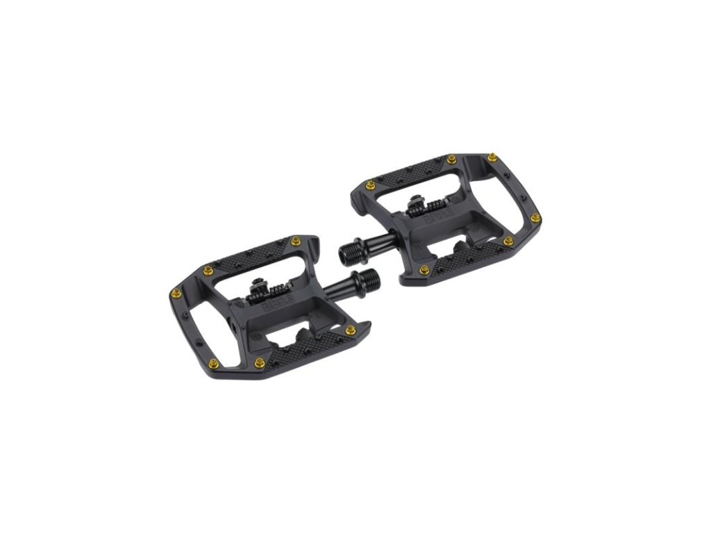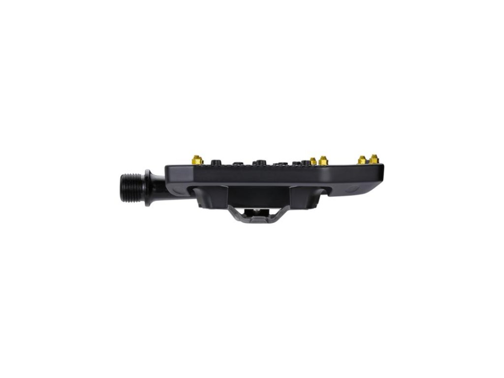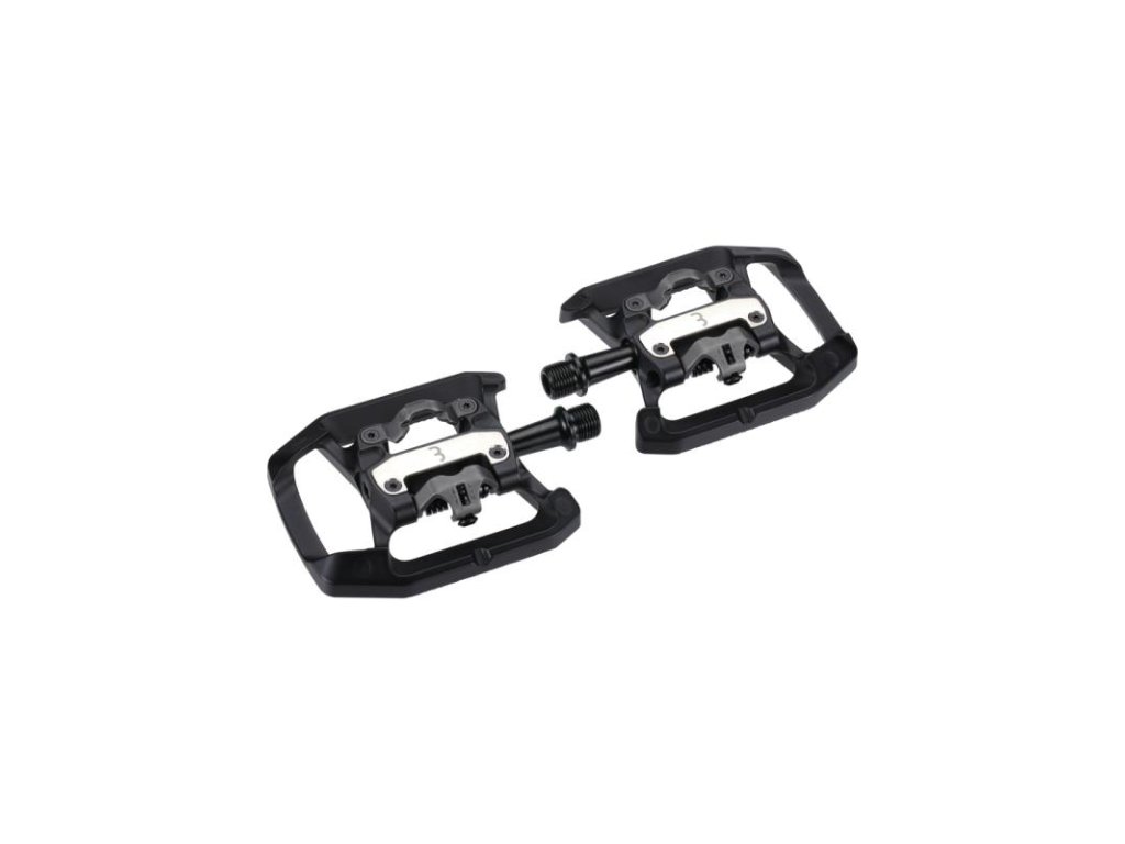 - Dvoj-funkčné pedále, jedna strana SPD kompatibilná a druhá protišmyková strana pre obuv s hladkou podrážkou