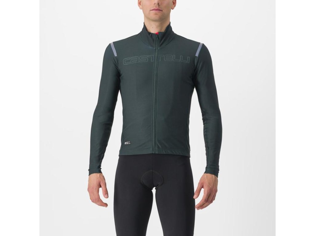 Toto priliehavé prevedenie robí dres teplejším tým, že sa netrepoce vo vetre. Druhým je hustejšia štruktúra tkaniny v porovnaní s tradičnými termo dresmi. Obe tieto vylepšenia zamedzujú, aby sa chladný vzduch dostával pod dres, takže je teplejší. Ďalším je Castelli patentovaná povrchová Nano úprava odpudzujúca vodu. Počas suchých dní o nej ani nebudete vedieť, ale keď príde ľahký dážď alebo narazíte na mokré cesty, zostanete suchší. Posledným vylepšením je 360° viditeľnosť, vďaka reflexným panelom na pleciach a spodnej časti chrbta.