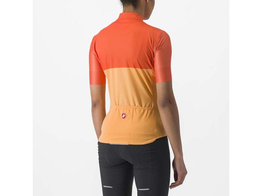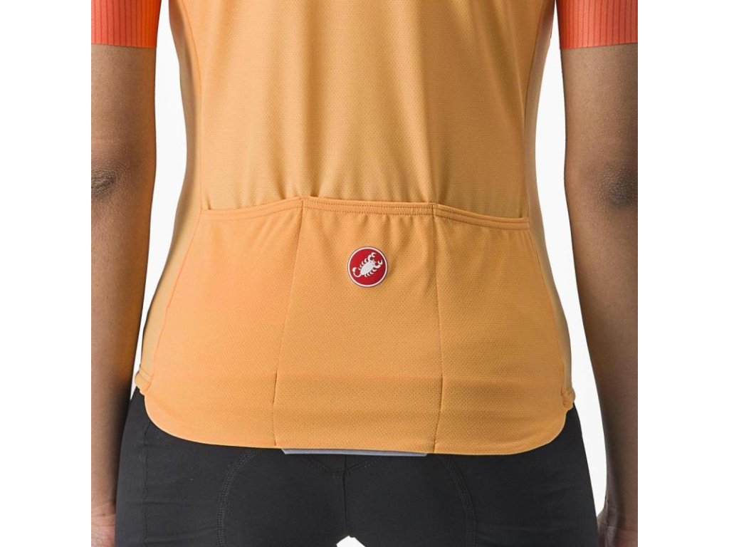 Názov Velocissima znamená v taliančine „veľmi rýchly“ a v tomto drese je skutočne veľa rýchlosti, aj keď nebol navrhnutý ako pretekársky dres. Spája tri rôzne tkaniny pre prispôsobenie sa a pohodlie. Hlavná tkanina je mäkká 100% polyesterová mikro sieťovina s úpravou Castelli ProSecco, ktorá vás udrží v suchu. Bočné panely sú zo strečovej sieťoviny pre ventiláciu a lepšie prispôsobenie sa tvarom tela. Rukávy sú identické ako na našich pretekárskych dresoch, ale v tomto prípade je štyrmi smermi strečová tkanina s neopracovaným zakončením rukávov rovnako pohodlná ako aerodynamická. Dresu Velocissima nechýbajú technické detaily, no bol navrhnutý, aby aj dobre vyzeral. Látky sú farbené do sýtej farby a následne sme pridali sublimačnú potlač pre grafiku tón v tóne cez ramená. Dres obsahuje konštrukčné detaily ako sú tri vrecká, ktoré klesajú až pod silikónový pás pre ľahší prístup, zatiaľ čo ľahko posuvný zips YKK® uľahčuje nastavenie ventilácie.