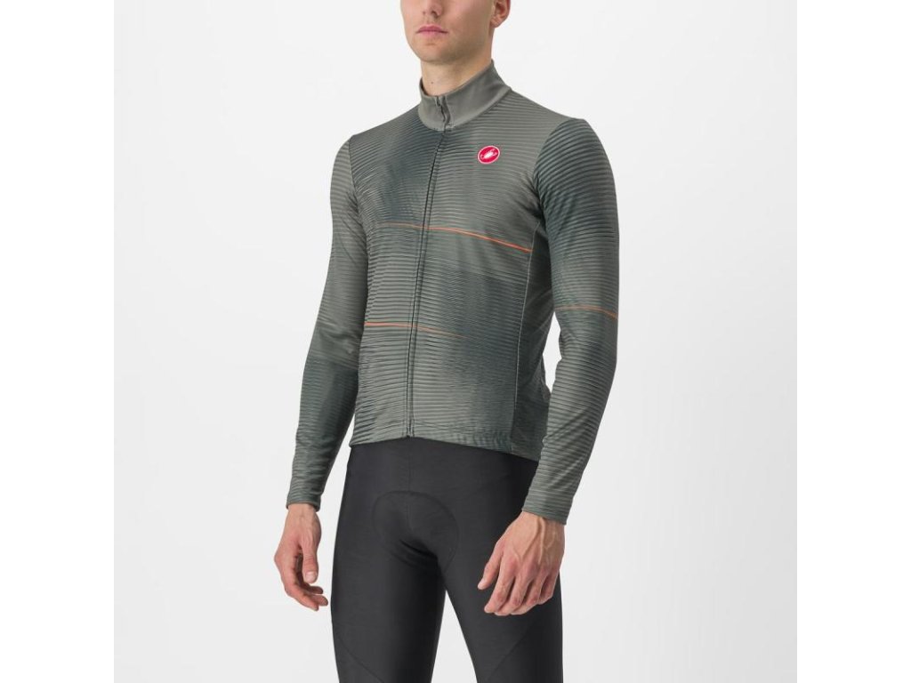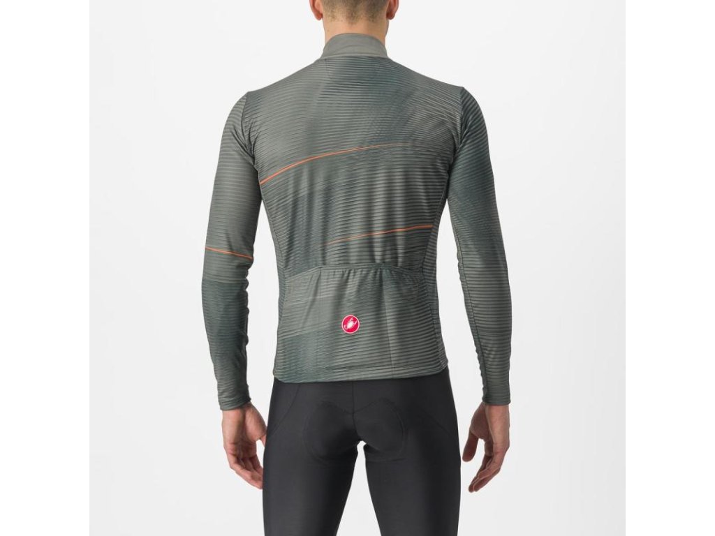 Termo dres je vstupom do zimného oblečenia, kde Castelli určuje štandardy toho, čo oblečenie dokáže. Rovnaký prístup sme zvolili aj pri tomto drese, určenom do chladnejšieho počasia. Má strečovú látku a česaným fleecom, dobre sedí a je teplý. Keďže ho budete používať pri teplotách, ktoré nie sú dosť nízke na bundu, látku sme prispôsobili, aby prepustila časť vzduchu a neprehrievali ste sa. Tento dres je čisto o funkčnosti, preto nechýbajú 3 zadné vrecká, silikónový lem pásu a ľahko chodiaci zips YKK® Vislon®