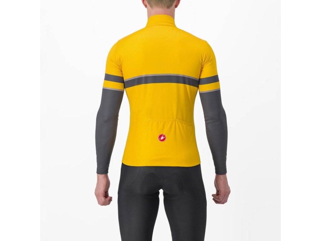 Termo dres je vstupom do zimného oblečenia, kde Castelli určuje štandardy toho, čo oblečenie dokáže. Rovnaký prístup sme zvolili aj pri tomto drese, určenom do chladnejšieho počasia. Má strečovú látku a česaným flísom, dobre sedí a je teplý. Keďže ho budete používať pri teplotách, ktoré nie sú dosť nízke na bundu, látku sme prispôsobili, aby prepustila časť vzduchu ale zároveň sa neprehrievali. Tento dres je čisto o funkčnosti, preto nechýbajú 3 zadné vrecká, silikónový lem na páse a ľahko chodiaci zips YKK® Vislon®.