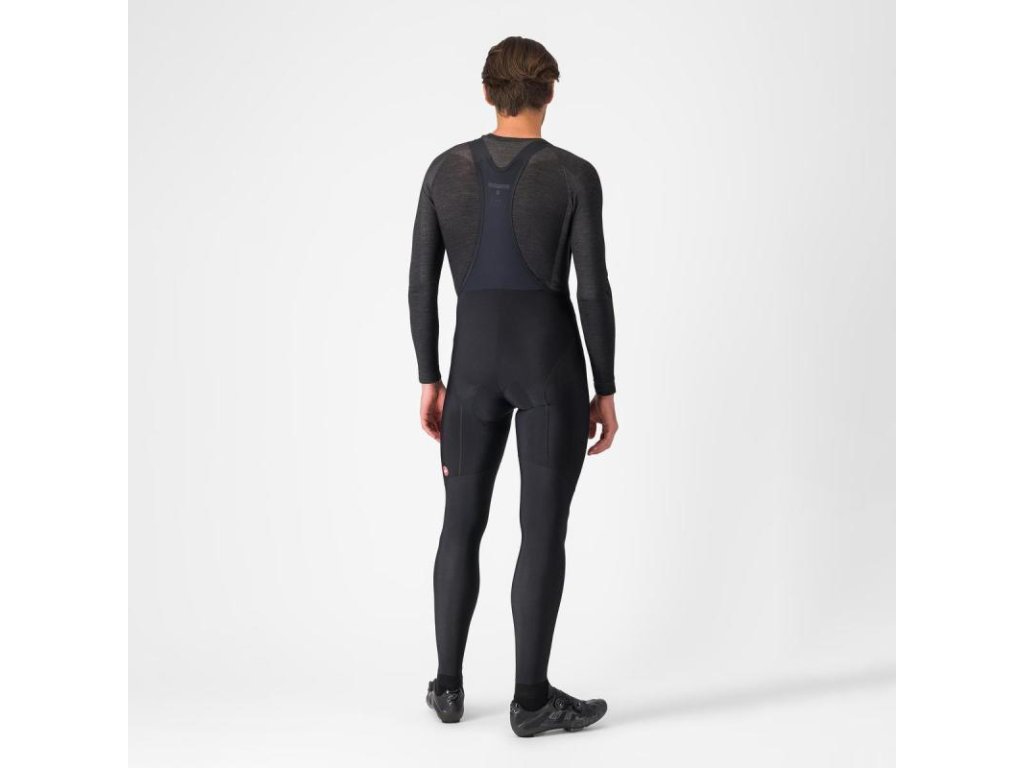 Nohavice sú vyrobené z troch rôznych materiálov, ktoré poskytujú správne pokrytie každej časti tela. Predný diel, od pása po kolená, je z materiálu Castelli Core Due, husto pletenej zmesi polyesteru a nylonu s vyššou hmotnosťou, ktorá blokuje väčšinu vetra. Polyesterová časť je priliehavá k pokožke pre aktívne odvádzanie vlhkosti a priadze majú duté jadro, a tento mŕtvy vzduchový priestor v strede poskytuje dodatočnú izoláciu. Na zadnej strane stehien a zadku pomáha vysoko elastická flísová látka lepšie prispôsobiť strih. Od kolena po členok ponúka Castelli Thermoflex dokonalé teplo a elasticitu, jediný šev na vnútornej strane nohavíc zabraňuje treniu okolo kolena. Nohavice sú zakončené plochým, otvorom na členku bez obšitia, majú ploché pletené traky a vložku KISS Air2.