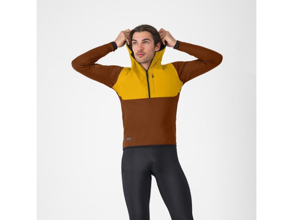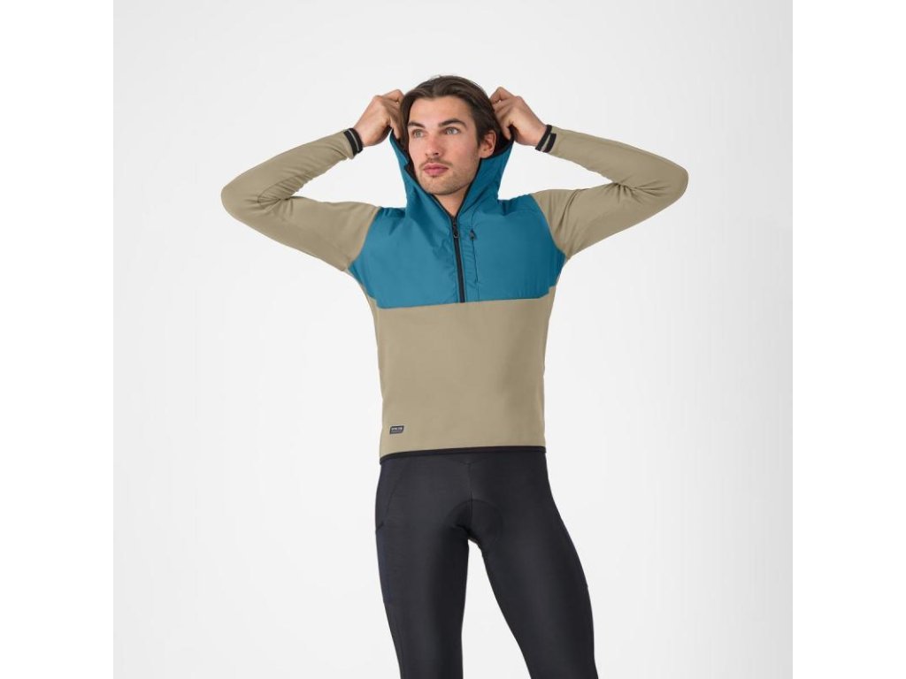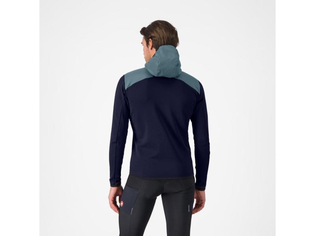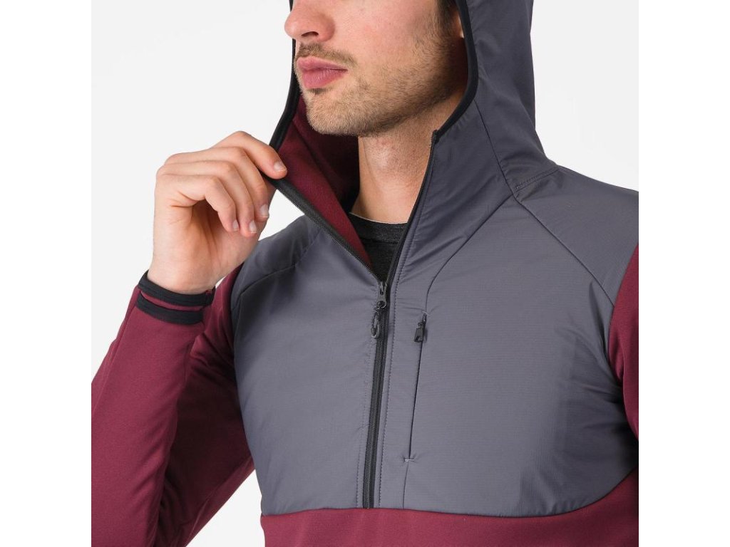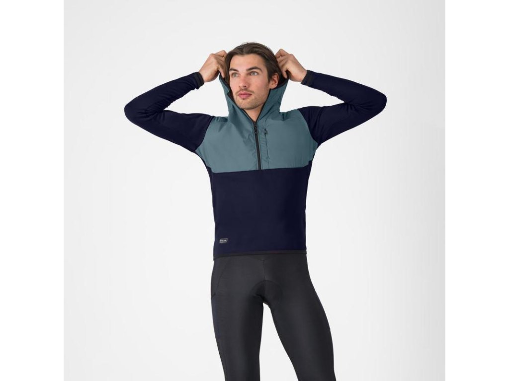 Určená na bicykel aj mimo bicykla, teplá flísová mikina s nylonovým prekrytím na hrudi a s kapucňou.Flísová mikina s vetroodolnými nylonovými panelmi