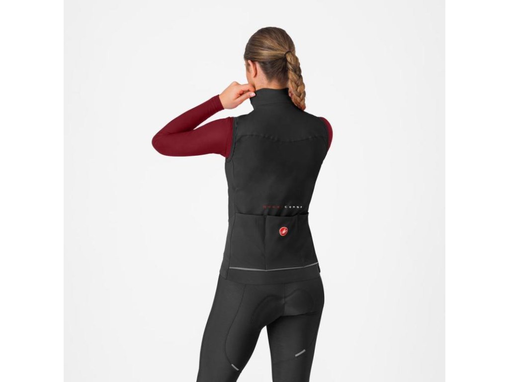Takto všestrannou ju robí technológia materiálu Castelli Ristretto. Materiál je navrhnutý s priepustnosťou vzduchu, takže je vetroodolný, ale prepúšťa veľmi malé množstvo vzduchu, vďaka čomu odvádza viac potu a udržiava vás v suchu. Predná strana je vyrobená zo stredne ťažkej verzie materiálu Ristretto, zatiaľ čo zadná strana je z elastickej tkaniny pre ešte väčšiu priedušnosť. Zostanete v suchu, čo znamená, že sa dokážete môžete zahriať aj s tenšou vestou.