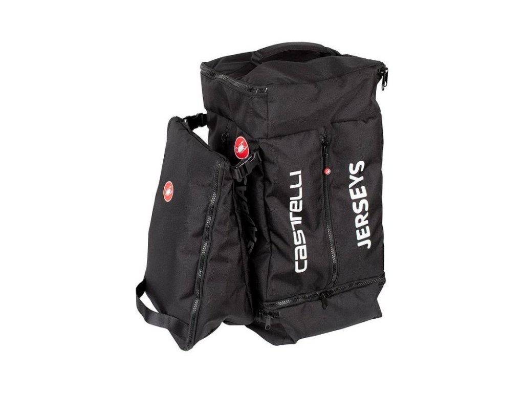 Dodávaná aj tímu Ineos.Oddelená časť pre každú časť výbavy – dresy, bundy, tretry, čapice, rukavice, ponožky a Gabba.